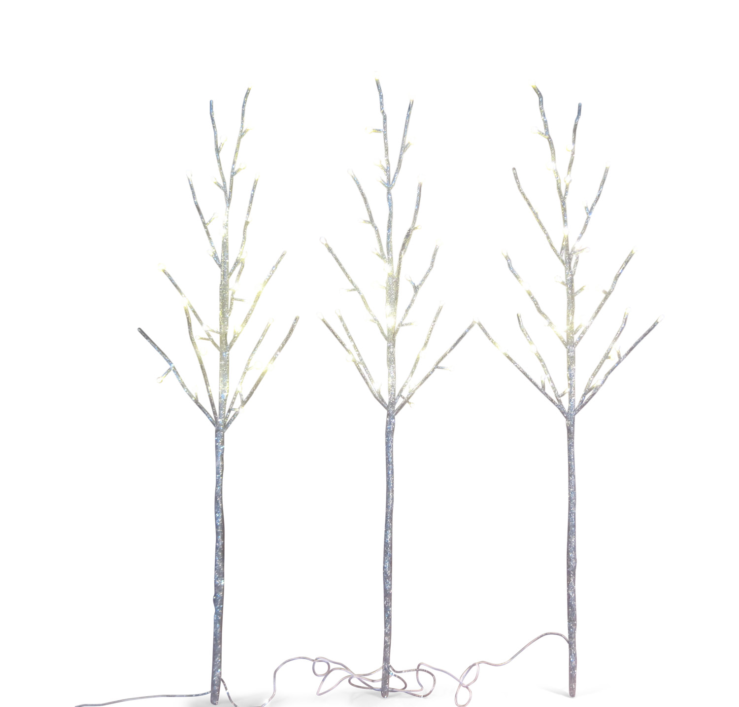 Designed for use in a variety of holiday display, the 3' tall branch can be grouped together in vase or added to greens in a container or use in a wreath to garland to add lighted sparkle to a holiday display. Three branches with 108 total warm white LED lights powder by a standard outlet transformer with cord, UL approved. Available in a variety of finishes in the Seasonal Concepts department in the HOM Furniture Stores.