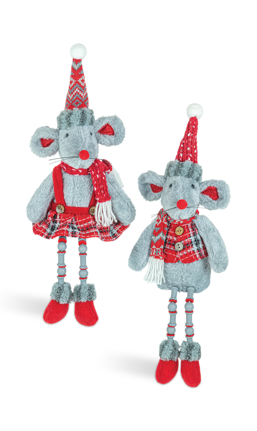 This festive holiday season, let us help you make your holiday extra special and exciting with these adorable little mice. Our grey mice come complete with warm stocking hats, plaid outfits, button legs, and red boots with grey cuffs. Plus, each mouse comes with a warm scarf around the neck for added warmth and style. Choose from either a boy mouse or a girl mouse, each sold separately.