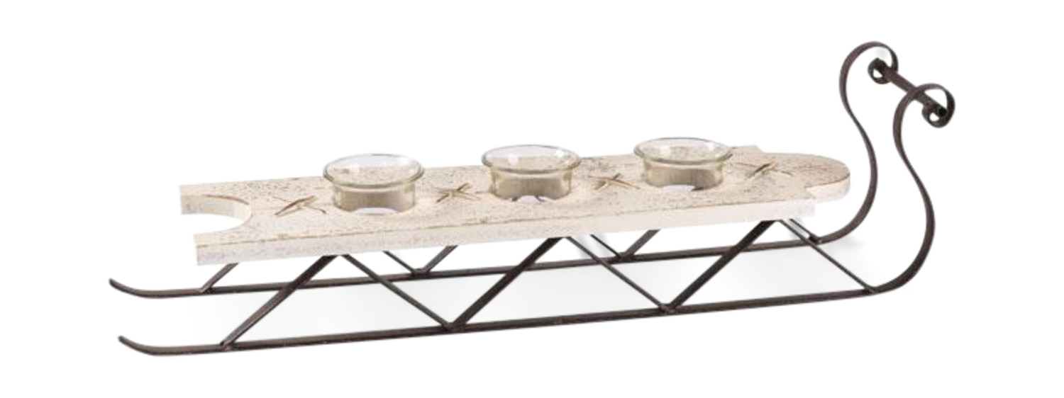 Welcome the holiday season with the Sleigh Candle Holder. This festive piece is sure to bring a magical touch to any room. Its unique sleigh design and metal frame will make it a stunning addition to your holiday decorations. It can hold several candles, making it perfect for illuminating your living space with holiday cheer.