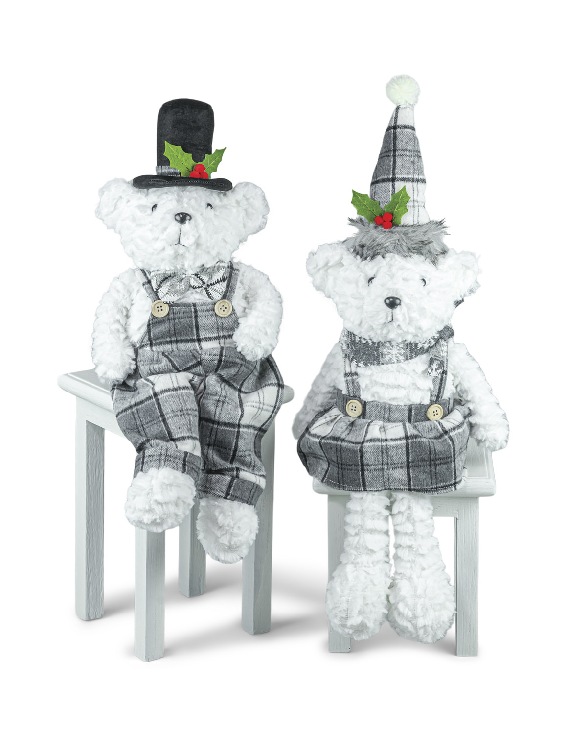 Experience the ultimate comfort and festive joy with a Plaid Polar Bear! This adorable companion brings a soft and cozy feel to any space, perfect for snuggling up during the holiday season. Dressed in grey plaid outfits and wearing warm decorative hats adorned with holly, this charming polar bear is the perfect addition to your holiday decor. With its versatile design, it can sit anywhere in your home, spreading Christmas cheer and excitement. Add a touch of warmth and whimsy to your holiday celebrations. Each is sold separately.