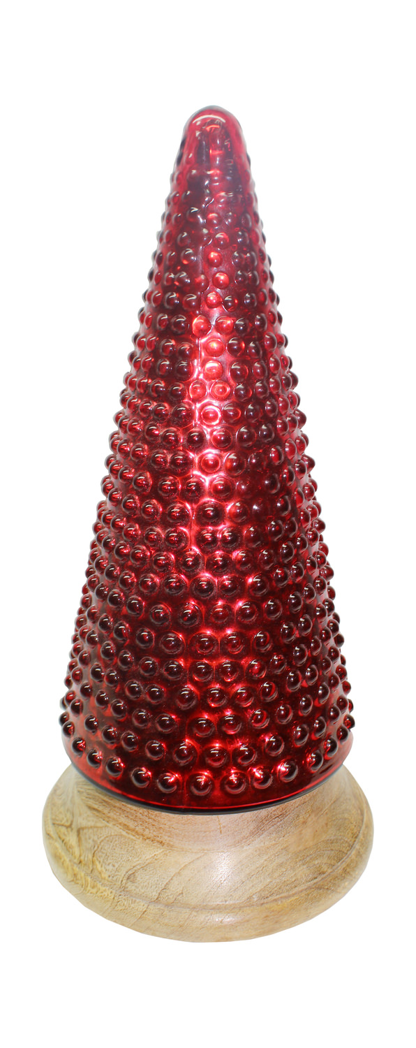 This stunning red decor tree will bring festive cheer to any home this holiday season! Boasting a shimmery mercury glass finish, this eye-catching tree is perfect for adding an exciting touch of Christmas spirit to any room in the house. The natural wooden base offers a timeless look, while the vibrant red color captures the joy and excitement of the holiday season.