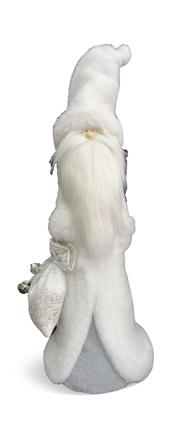 Get ready to spread holiday cheer with our 28" Santa Claus figurine. Standing tall and proud in all white, this jolly old fellow comes with his trusty white sack of toys, ready to bring joy to all. Perfect for adding a touch of excitement and festive spirit to your home this holiday season. Embrace the magic of Christmas with this charming Santa Claus figure from HOM Furniture!