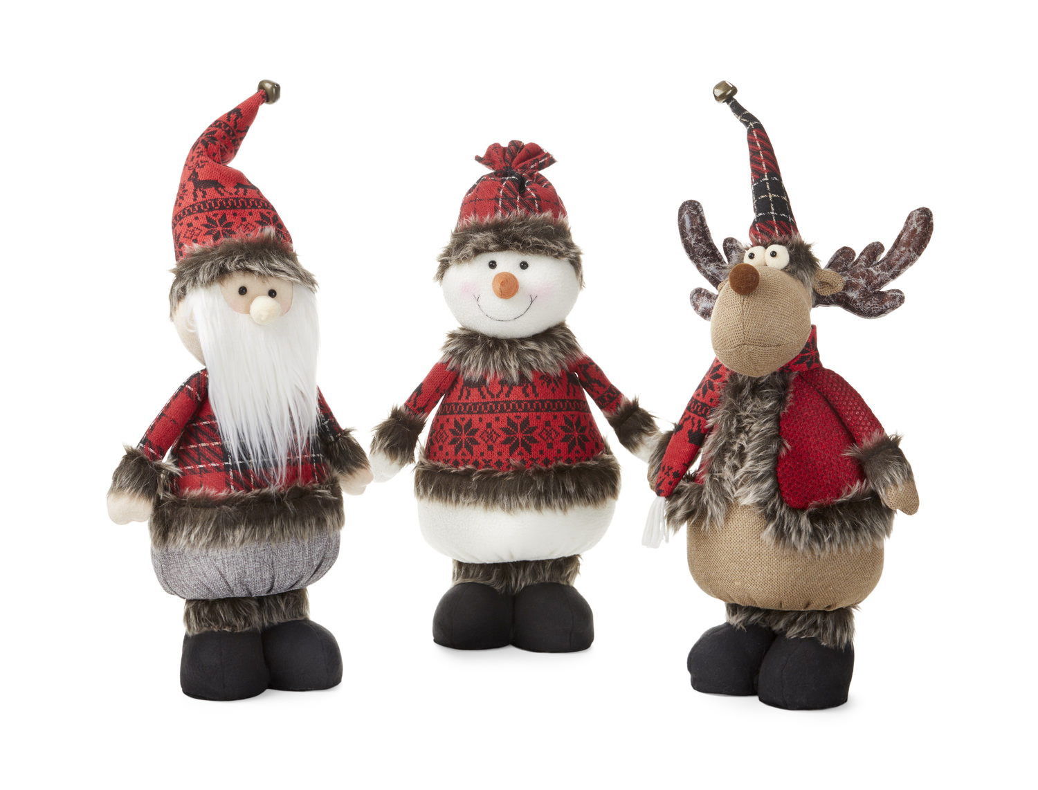 This assorted set of reindeer, snowmen and Santa Claus character figures is a great way to enhance your Christmas decorations or to start a collection of figures. The scotch plaid outfits will add a cute touch when placed individually or all together!
