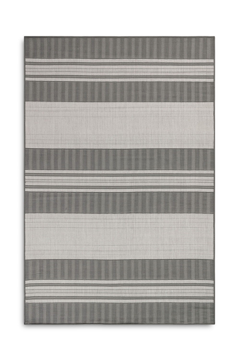 The Carmel Stripe Grey Area Rug has a modern casual look that will add a pop to either an interior setting or exterior. This rug is constructed with polypropylene yarns, which makes the rug hold up to both indoor or outdoor areas. This indoor and outdoor rug is made in grey tones with variegated ivory stripes. The simple stripe pattern is basic yet very impactful to any living space.