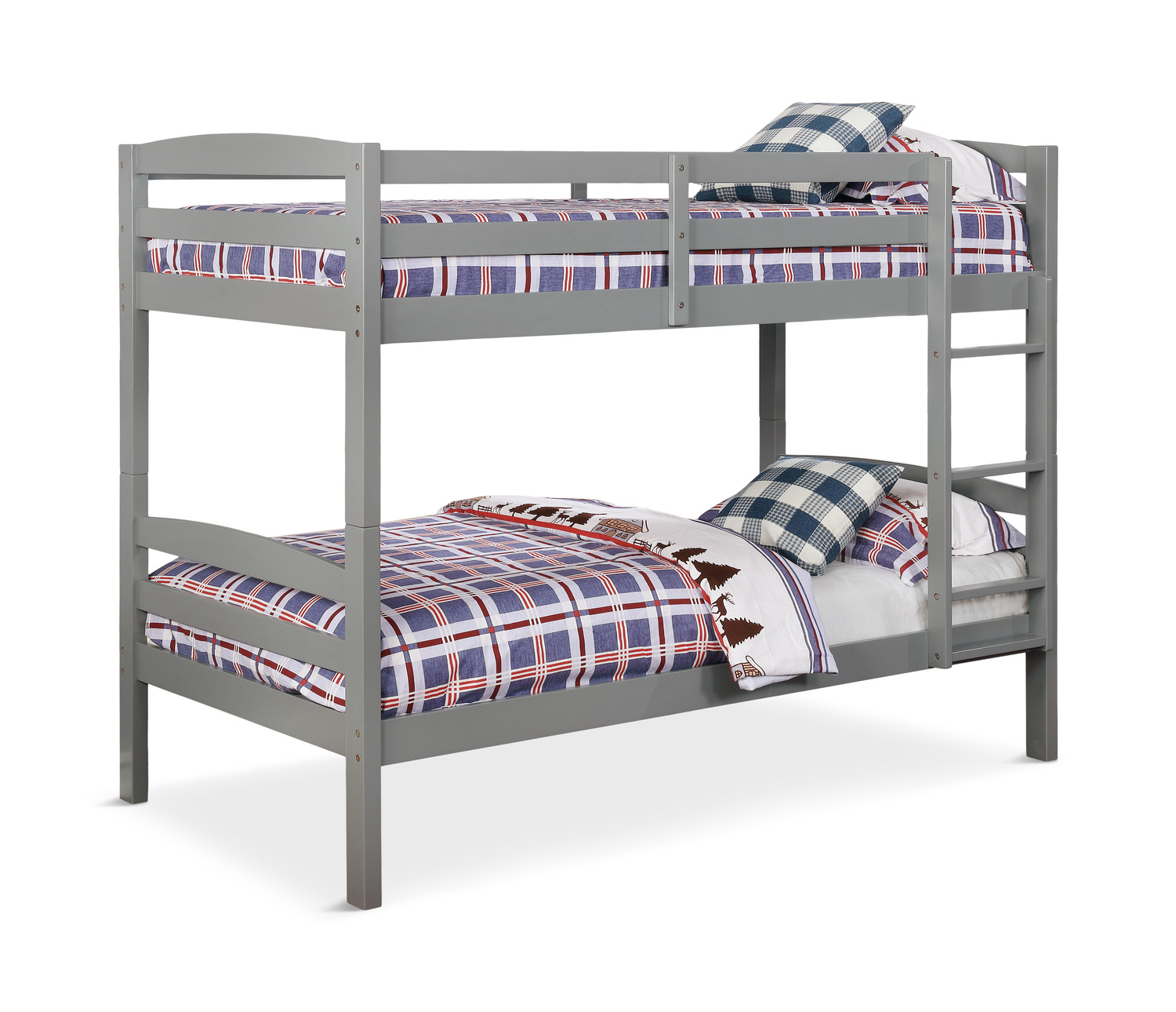 Introducing the Scout Twin/Twin Bunk Bed! This stylish and sturdy bunk bed is perfect for maximizing space in your child's bedroom. With a weight capacity of 250 pounds per bed, you can rest assured that this bed is as safe as it is stylish. Crafted from solid pine wood, this bunk bed is built to last. The finish adds a modern touch to any room, while the transitional style ensures it will blend seamlessly with any décor. The painted finish gives it a fresh and clean look that is sure to brighten up the room.