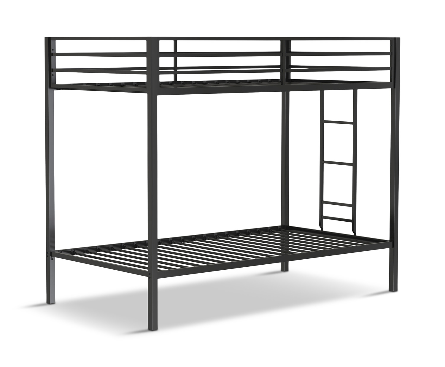 Introducing the Trevar Twin Over Twin Bunk Bed from HOM Furniture, a perfect blend of style and functionality for your space! Crafted from durable steel material in a sleek black finish, this bunk bed boasts a transitional design that effortlessly complements any décor. With a weight capacity of 400 lbs on each bunk, rest assured that this bunk bed not only offers a modern aesthetic but also provides sturdy support for a peaceful night's sleep. The Twin over Twin size ensures ample space for two to sleep comfortably, making it an ideal choice for kids' rooms, guest rooms, or even dormitories.