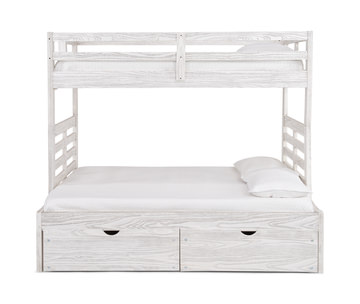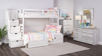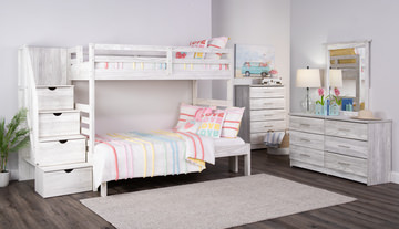 Bunk beds for kids work great to maximize space in a child’s bedroom—whether it’s for sibling room sharing or just having the extra bed available for the child who loves sleepovers. Choose twin over twin bunk beds, twin over full bunk beds, or full over full bunk beds for kids, depending on your children’s ages and the available space. These versatile twin over full bunk bed options can be set up as traditional bunkbeds, and many styles offer the option of separating the beds into two individual beds. This can provide an ideal solution as the kids grow, whether they continue to share a room or move into their own spaces.
