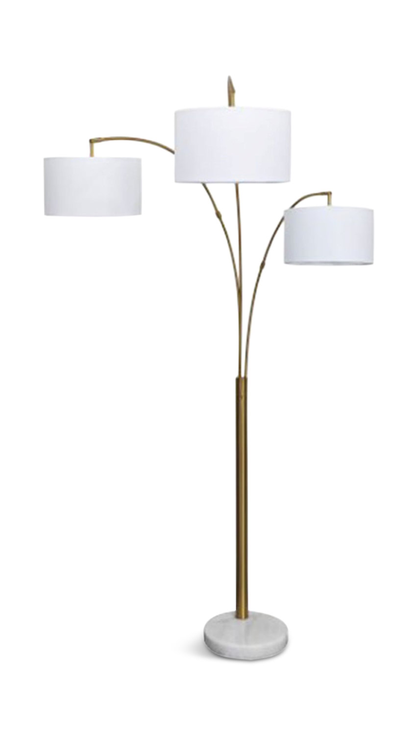 Elevate your living space with the Alaric Arc Lamp from HOM Furniture. This modern-style lamp features drum hardback fabric shades, a sleek white marble base, and a luxurious gold-tone finish that adds a touch of elegance to any room. The adjustable arms and neck allow you to customize the lighting to suit your needs, while the dimmer switch provides easy control over brightness levels. Constructed of durable metal and marble, this Arc Lamp is a stylish and functional addition to your home. Please note that customer assembly is required. Brighten up your space with the sophisticated design of the Alaric Arc Lamp in Gold.