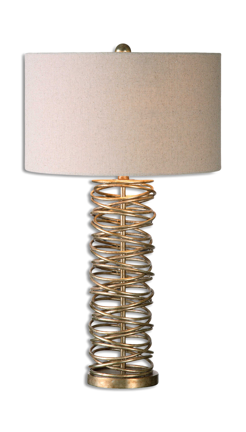 Illuminate your space with the Amarey Metal Ring Table Lamp from HOM Furniture. Crafted with layered metal rings finished in a heavily antiqued silver champagne, this table lamp exudes elegance and sophistication. The round hardback drum shade in oatmeal linen fabric with light natural slubbing adds a touch of warmth to your decor. The Uttermost brand ensures high-quality craftsmanship and timeless design. This table lamp is perfect for adding a touch of glamour to any room with its silver color and unique design. Enhance your home or office with the Amarey Metal Ring Table Lamp and enjoy the perfect blend of style and functionality.