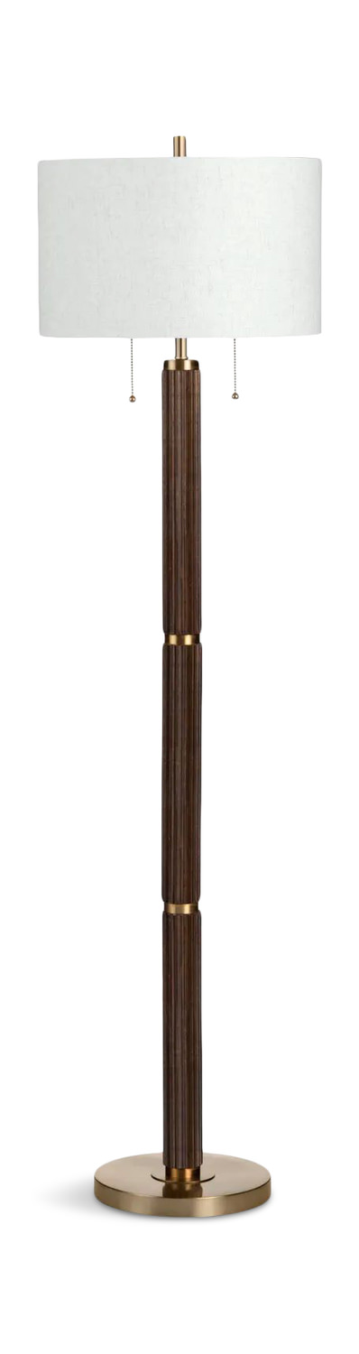 Introducing the Arlo Floor Lamp from HOM Furniture, a stylish lighting solution that combines classic design elements with a modern twist. The fluted wood columns adorned with burnished brass components exude elegance and sophistication, while the double socket with double pull chains offers convenience and versatility. Topped with a crisp white round lampshade, this floor lamp will illuminate your space with a soft, ambient glow. Elevate your home décor with the Arlo Floor Lamp and add a touch of refined beauty to any room.
