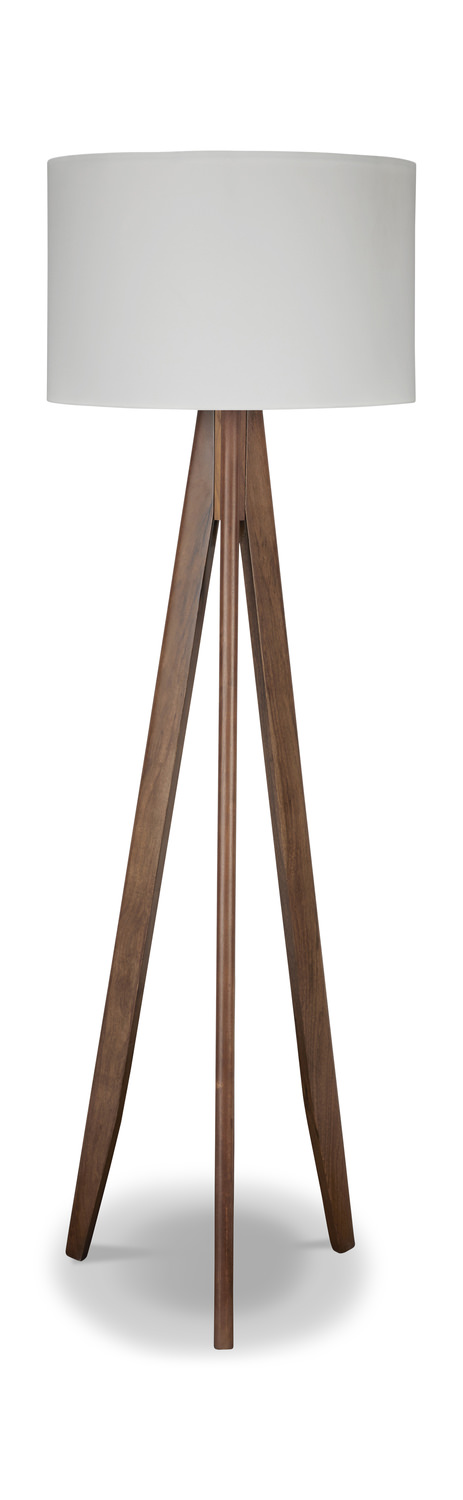 Introducing the Avocado Floor Lamp from HOM Furniture. This stylish lamp features a medium brown wood finish and a fabric shade, creating a warm and inviting glow in any room. Its eye-catching tripod design adds a touch of modern sophistication, making it ideal for a reading space or as an accent in a transitional office setting. The Avocado Floor Lamp provides just the right amount of light to create a cozy and inviting atmosphere. Add a touch of elegance to your space with this versatile and practical lighting solution.