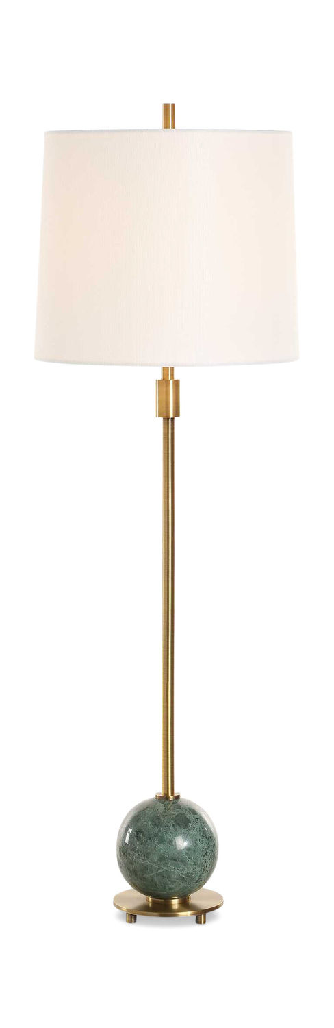 - The Bledel Buffet Lamp Features A Sleek And Sophisticated Plated Brushed Brass Column Elevated By A Polished Dark Green Marble Orb.