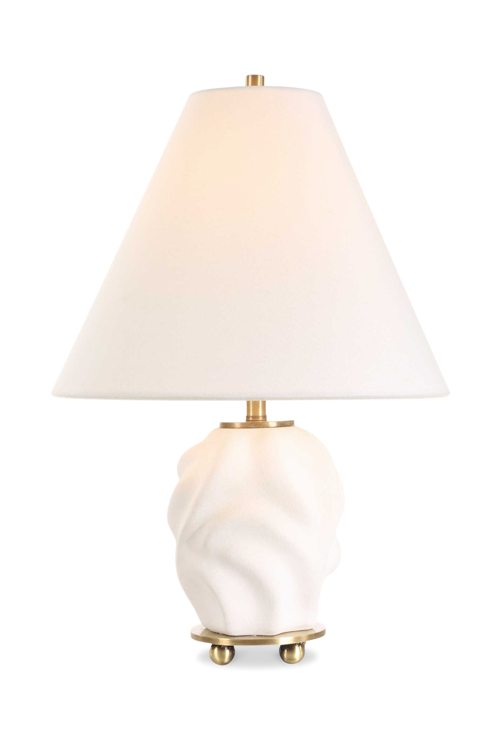 - The Bora Accent Lamp Features A 3-dimensional Swirled Ceramic Base Finished In A Matte White Glaze, Accented With Brass Plated Details.