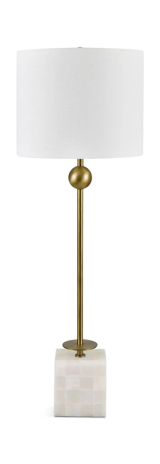 Introducing the Callie Buffet Lamp from HOM Furniture, a stunning piece that seamlessly blends elegance with modern design. The slender silhouette of this lamp is beautifully complemented by its tessellated alabaster block base, exuding a sense of refinement and sophistication. Soft gold accents add a touch of luxury, while the white linen shade provides a soft and inviting glow. Perfect for adding a refined touch to any space, the Callie Buffet Lamp is sure to elevate your home décor with its timeless beauty.