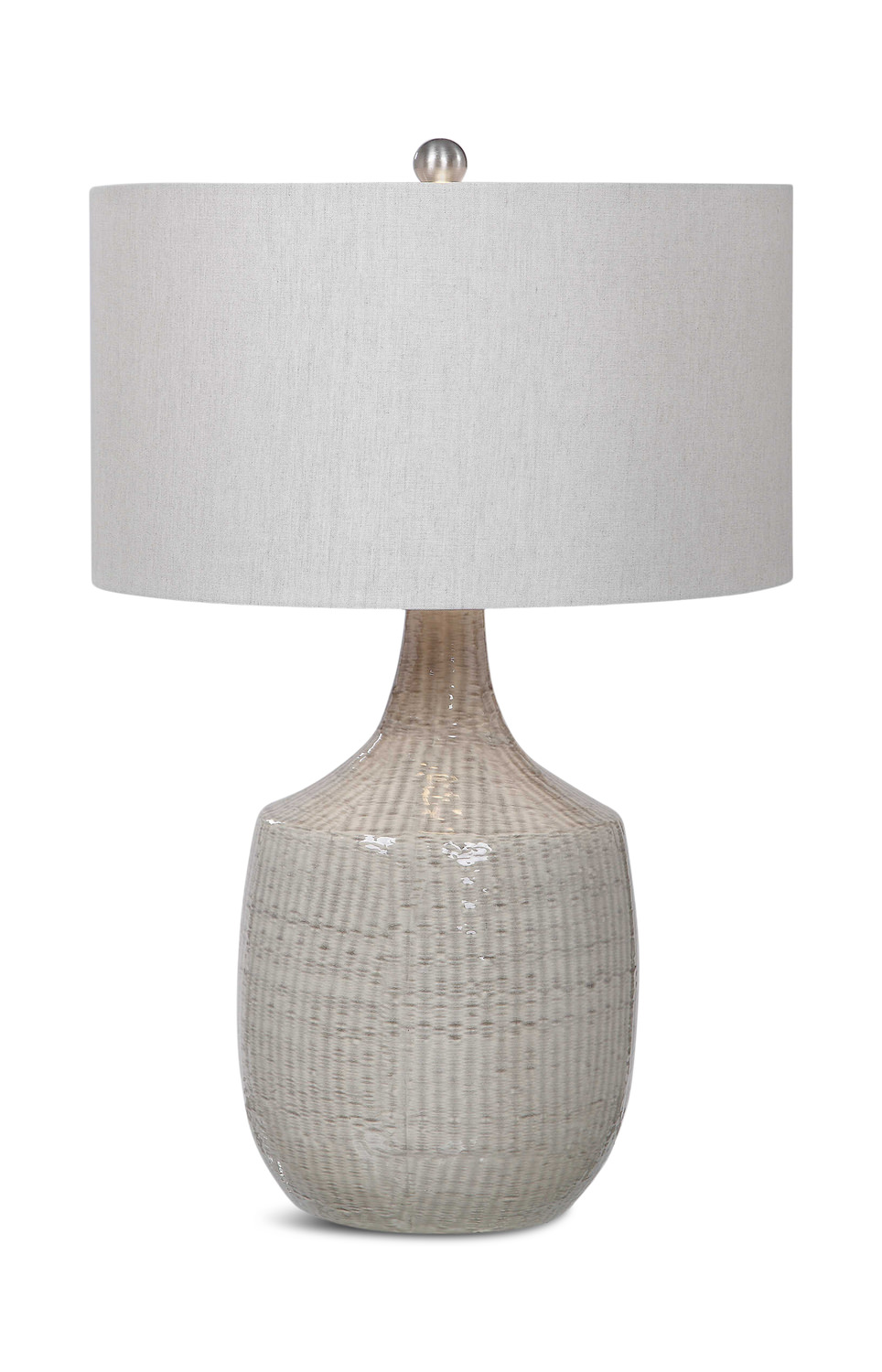 - This Ceramic Base Keeps It Simple In Shape, Yet Upscale With Its Fashionable Pattern That's Finished In A Distressed Light Gray Glaze, Paired With Brushed Nickel Plated Accents.
