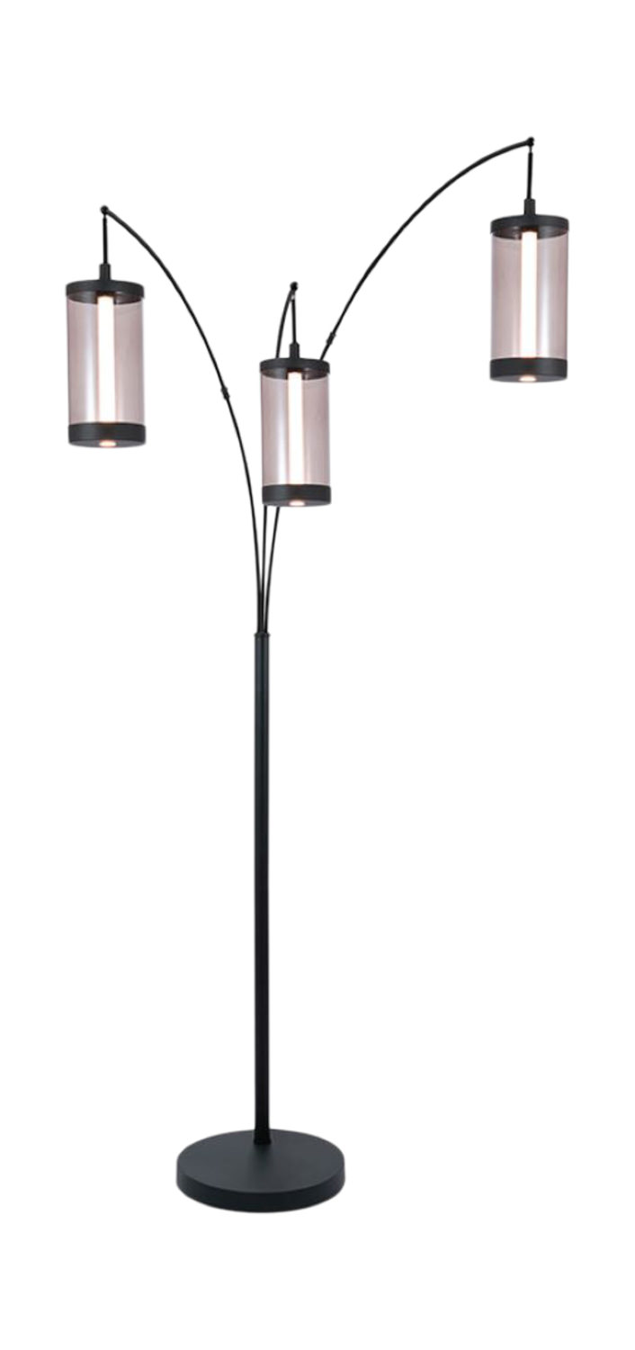 Introducing the Felix 3-Lite Arc Lamp from HOM Furniture. This modern and sleek floor lamp features three dimmable LED lights, giving you the flexibility to adjust the brightness to suit your needs. The lamp is equipped with a convenient 3-way switch for easy operation. Finished in a stylish solid black, this lamp is constructed of durable metal, ensuring long-lasting quality. The glass cylinder shades with a smoke finish add a touch of sophistication to any space. Illuminate your home with the Felix 3-Lite Arc Lamp and enjoy both style and functionality in one elegant piece.