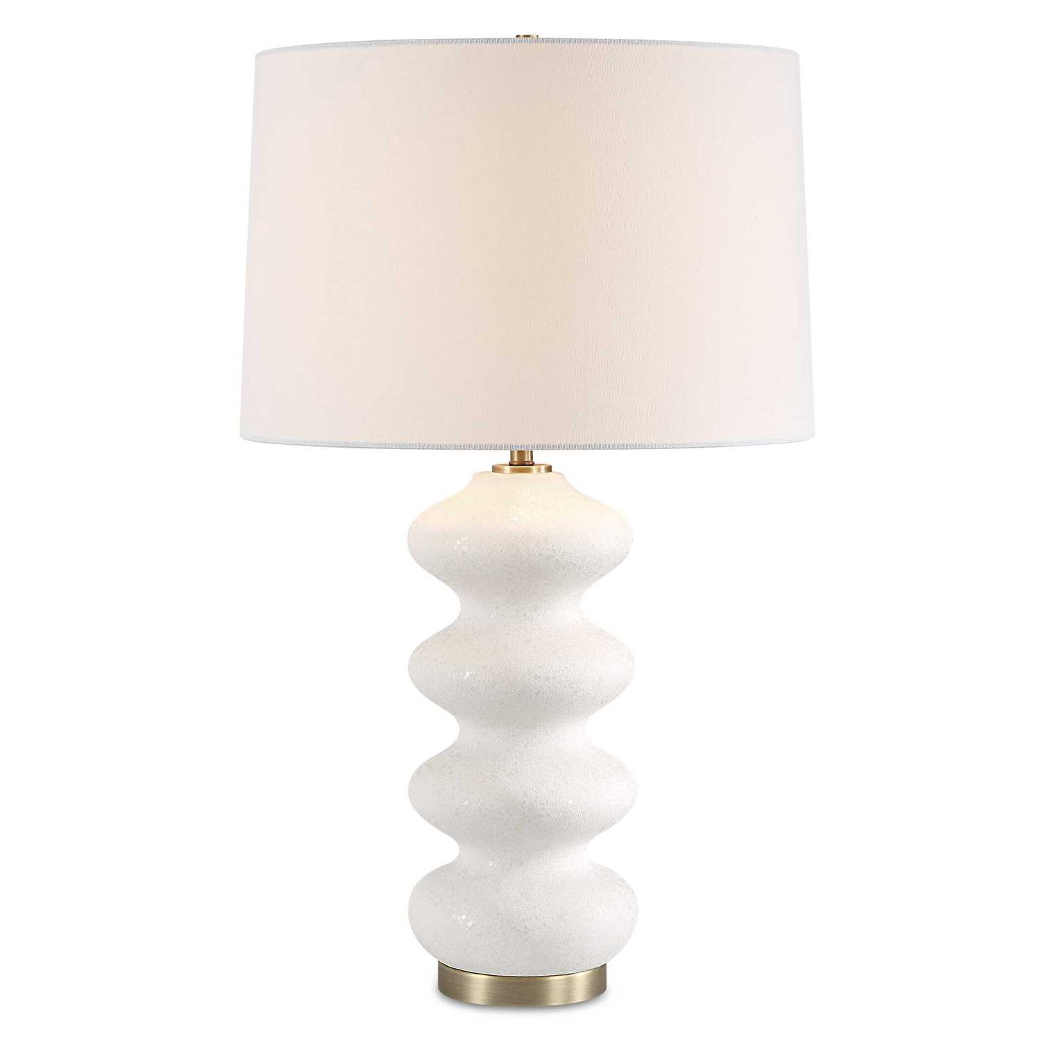 Illuminate your space with the timeless elegance of the Liora White Table Lamp from HOM Furniture. This exquisite porcelain lamp exudes sophistication with its graceful flowing design and white tone-on-tone glaze. The subtle texture adds depth and character, while the brushed antique plated brass accents bring a touch of warmth to any room. Finished with a slightly tapered round hardback shade covered in a white linen fabric, this lamp is a perfect blend of style and functionality. The Liora White Table Lamp in white/off-white color by Uttermost is a stunning addition to your decor.