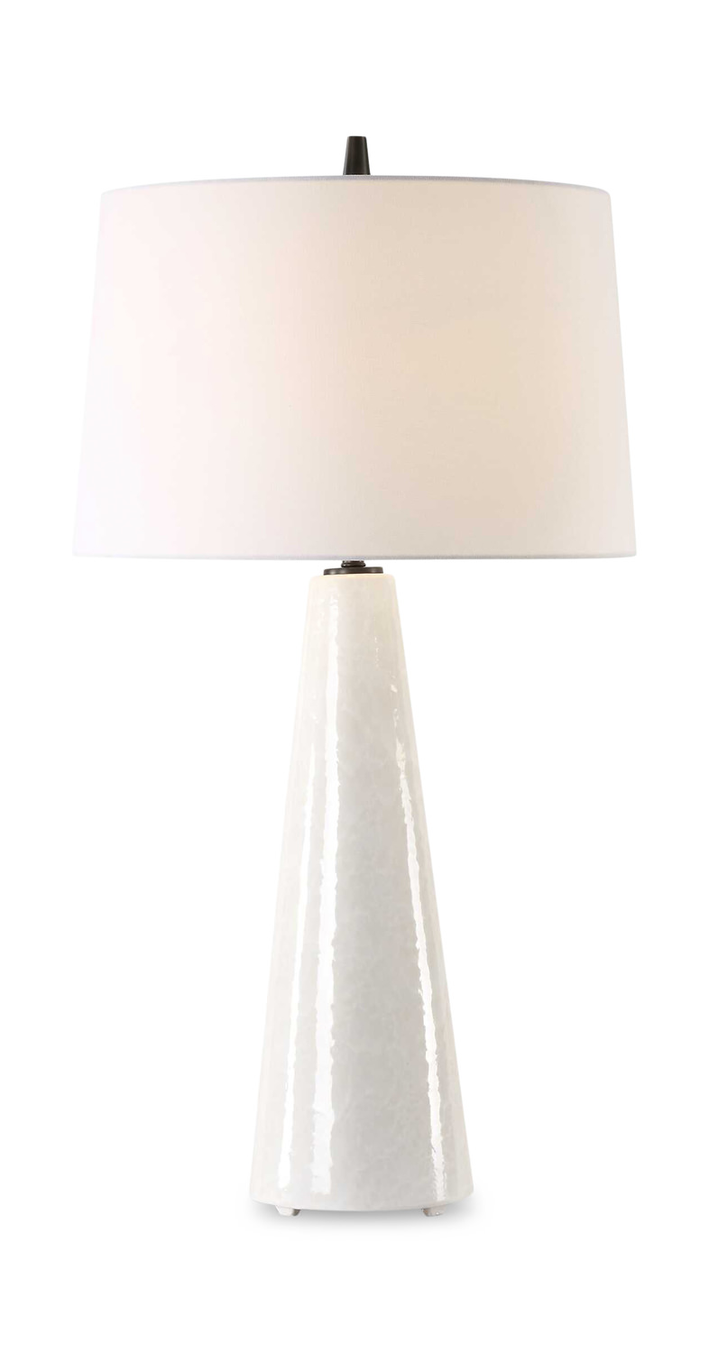 Elevate your home decor with the Loire Ivory Glaze Table Lamp from Uttermost. This stunning ceramic table lamp boasts a cream-ivory drip glaze with a subtle texture, complemented by sleek matte black details for a touch of modern elegance. The lamp is paired with a tapered round hardback shade in crisp white linen fabric, adding a soft and inviting glow to any room. With its simple yet versatile design, this table lamp is perfect for adding a stylish accent to your living room, bedroom, or office. Illuminate your space with sophistication and charm with the Loire Ivory Glaze Table Lamp by Uttermost.