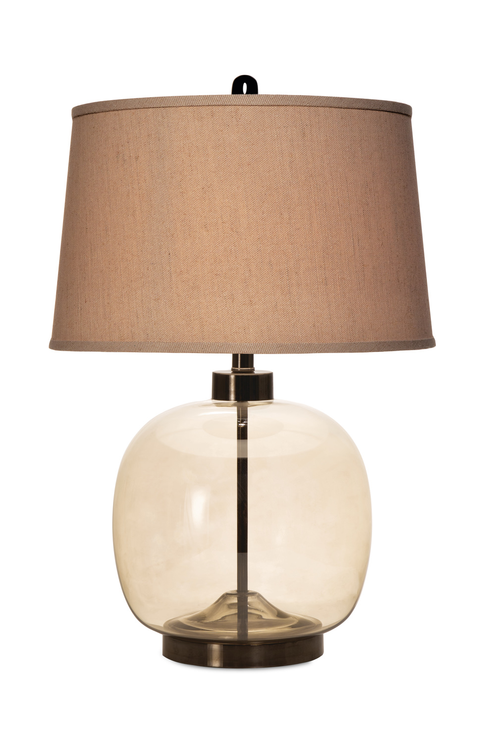The Loraine Table Lamp would look stunning on a bedroom nightstand or end table in a living room. The base has a tinted glass globe shape that is complimented with a tan drum shade. This table lamp would look great in a modern or traditional setting.