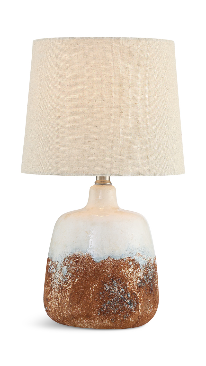 Introducing the Marco Table Lamp by HOM Furniture, a charming addition to your space. The two-tone base in white and rustic brown gives this ceramic lamp a unique and stylish look. Paired with a light beige shade, this lamp is the perfect accent piece for smaller spaces. Add a touch of warmth and light to any room with the Marco Table Lamp.