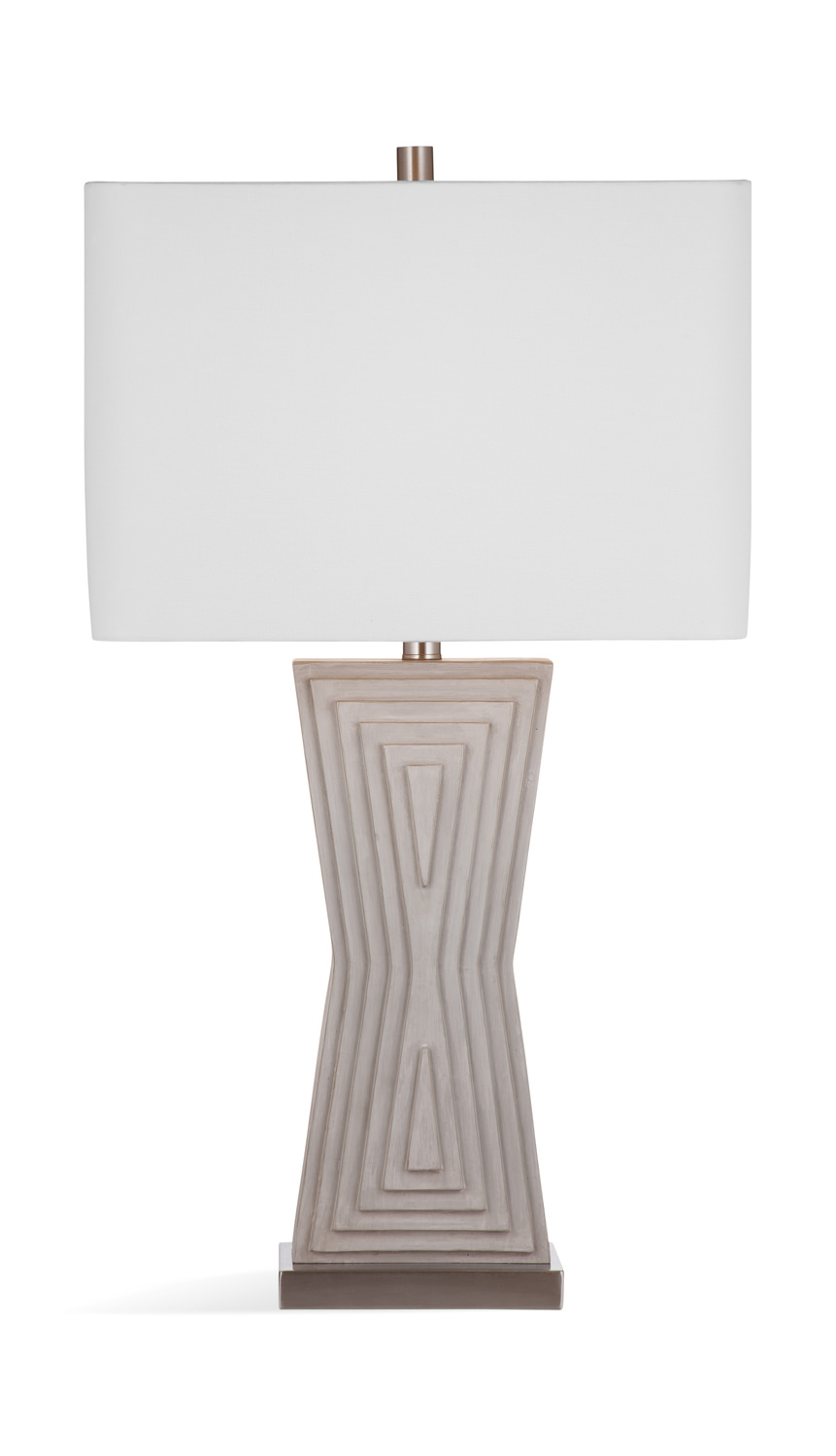 Introducing the Marguerite Table Lamp at HOM where the array of styles helps drive that the right lighting is everything. Elevate your living space with this modern, geometric-inspired lamp that adds character and style. Made with resin construction and showcasing a cement finish, this lamp features a graduating angular design that will surely catch the eye of your guests. The Marguerite Table Lamp requires a 100 Watt bulb (not included) to illuminate your space beautifully. Each lamp is skillfully hand-crafted by artisans, ensuring a unique touch to your decor. Add a touch of sophistication and contemporary flair to your home with the Marguerite Table Lamp.