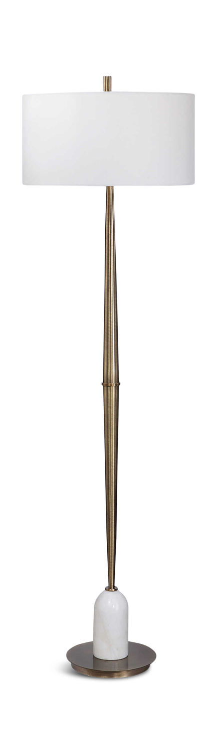 - Transitional In Design, This Floor Lamp Has A Tapered Base Finished In A Plated Antique Brass, Accented With A Polished White Marble Detail.
