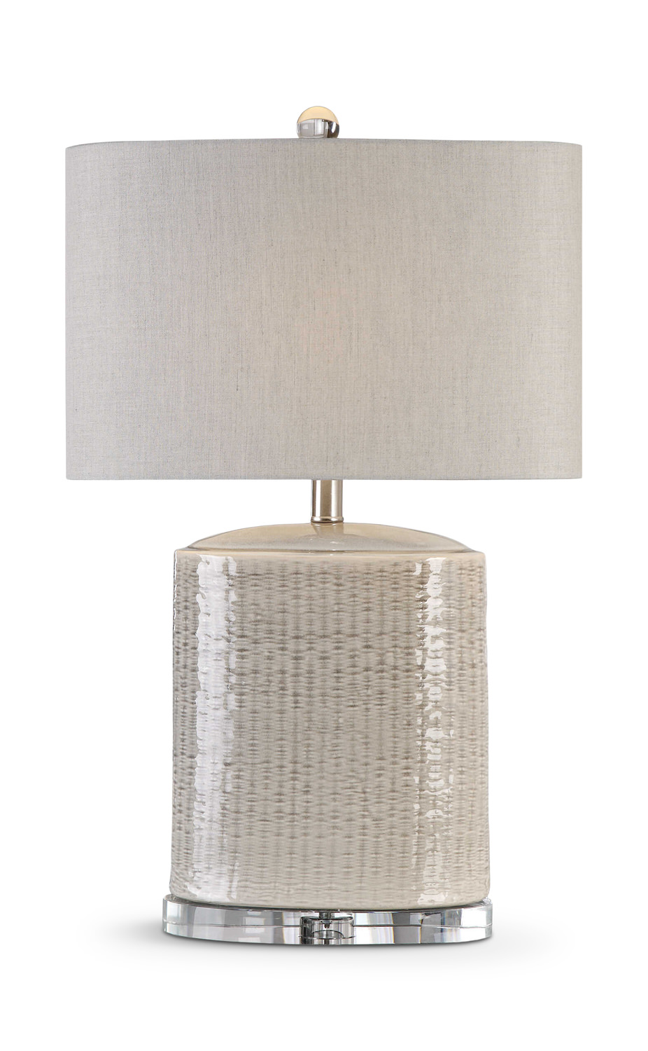 Elevate the ambiance of any room with the exquisite Modica Taupe Ceramic Lamp from HOM Furniture. This lamp boasts a textured, oval ceramic base in a sophisticated light taupe-gray glaze, elegantly complemented by brushed nickel plated accents and sparkling crystal details. The oval hardback drum shade in a soft beige linen fabric with natural slubbing adds a touch of warmth to the overall look. As a product of the renowned Uttermost brand, you can trust in the quality and craftsmanship of this stunning gray lamp.