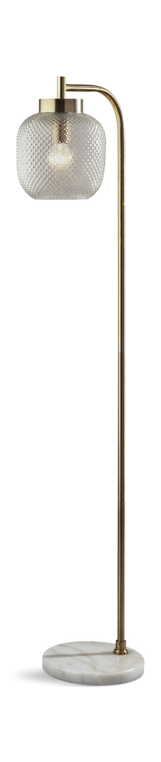 Introducing the Natasha Floor Lamp by HOM Furniture! This charming accent piece is the perfect addition to your cozy corner. With its antique brass finish and textured glass shade, this lamp exudes elegance and style. The touch switch on the shade makes it easy to adjust the lighting to your liking. The marble-found base adds a touch of sophistication while providing a stable foundation. The Natasha Floor Lamp offers a warm glow that will create a welcoming atmosphere in any living space. Illuminate your home with the Natasha Floor Lamp and transform your space into a cozy haven.