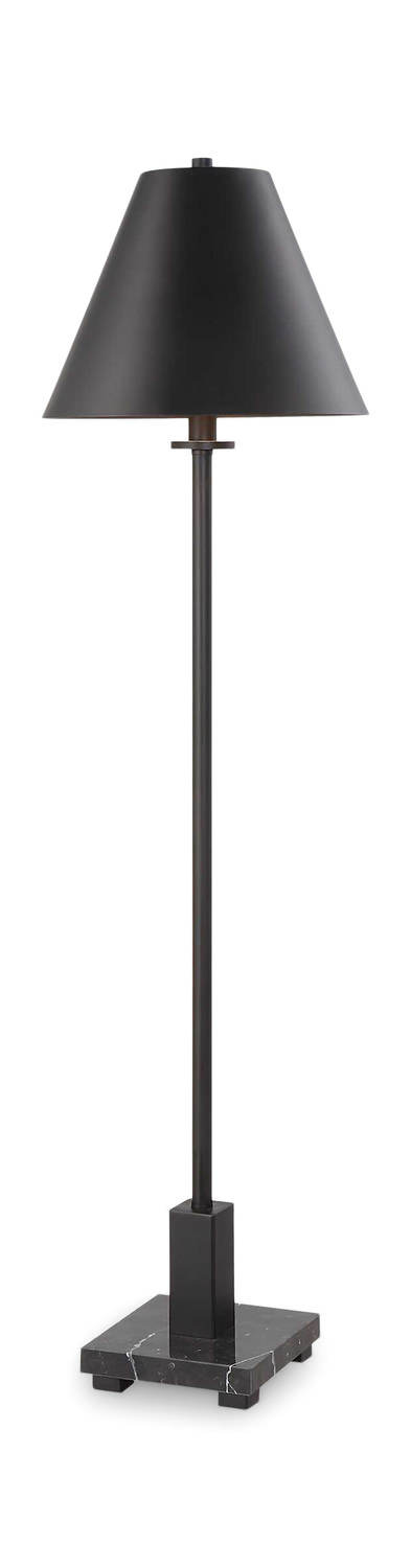 • The Pilot Buffet Lamp Displays A Slender Metal Construction Finished In Satin Black With A Coordinating Metal Empire Shade And An Elegant Black Marble Foot With Natural White Veining.
