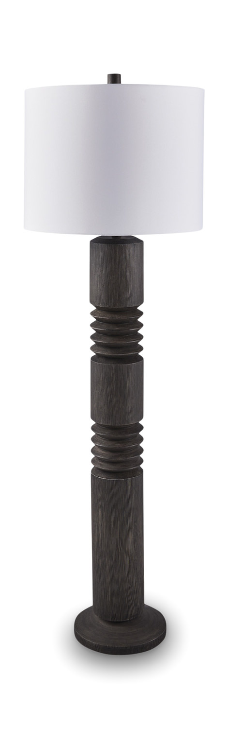 Introducing the Rayne Floor Lamp from HOM Furniture, a stunning addition to your home décor. This floor lamp features a sleek distressed black finish and intricate carved details that give it a contemporary flair. The white drum shade provides a soft and inviting glow, perfect for creating a cozy atmosphere in any room. With a 3-way switch, you can easily adjust the brightness to suit your needs. The Rayne Floor Lamp is bold and striking, making it a standout piece that will elevate the style of any space.