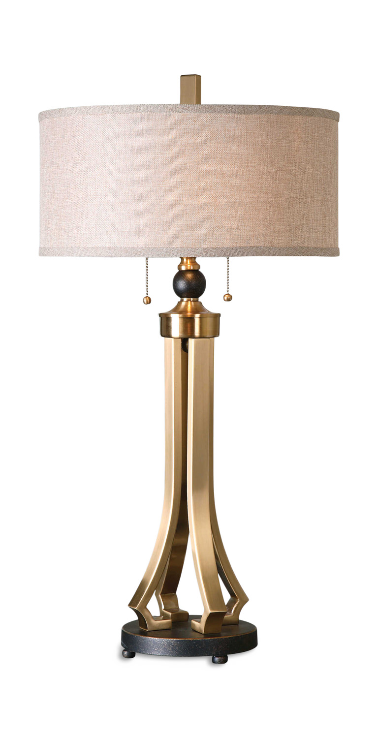 Illuminate your space with the Selvino Brushed Brass Table Lamp from HOM Furniture. This exquisite piece features brushed brass plated metal accented with oil rubbed bronze details, adding a touch of sophistication to any room. The round hardback drum shade in rust beige linen fabric complements the bronze color scheme beautifully. From the renowned Uttermost brand, this table lamp exudes quality and style. Elevate your decor with the Selvino Brushed Brass Table Lamp and bring a warm glow to your home.
