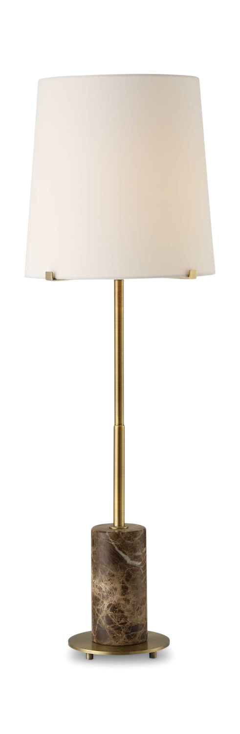 - The Sepia Buffet Lamp Showcases A Brown Marble Cylinder Base Accented With Plated Antique Brass Details.