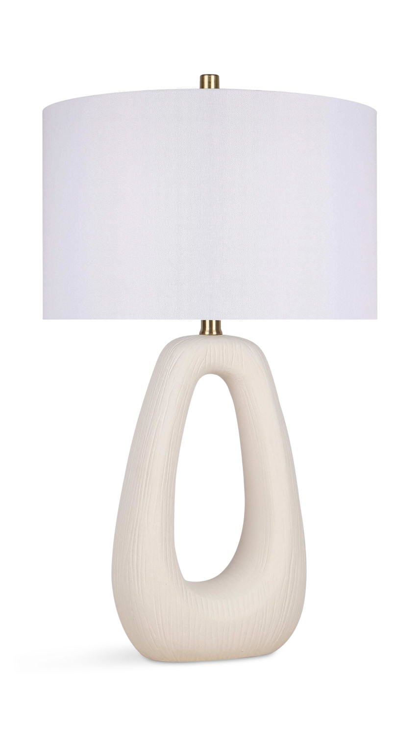Introducing the Serenity Loop Table Lamp by HOM Furniture, a perfect fusion of artistry and practicality. This exquisite table lamp exudes a soft, ambient glow that will illuminate any space with tranquility and style. The elegant white linen drum shade beautifully complements the sculptural ceramic base, creating a harmonious balance of form and function. The serene white color scheme and casual design make this lamp a versatile addition to any décor. Elevate your space with the Serenity Loop Table Lamp and experience a perfect blend of sophistication and relaxation.