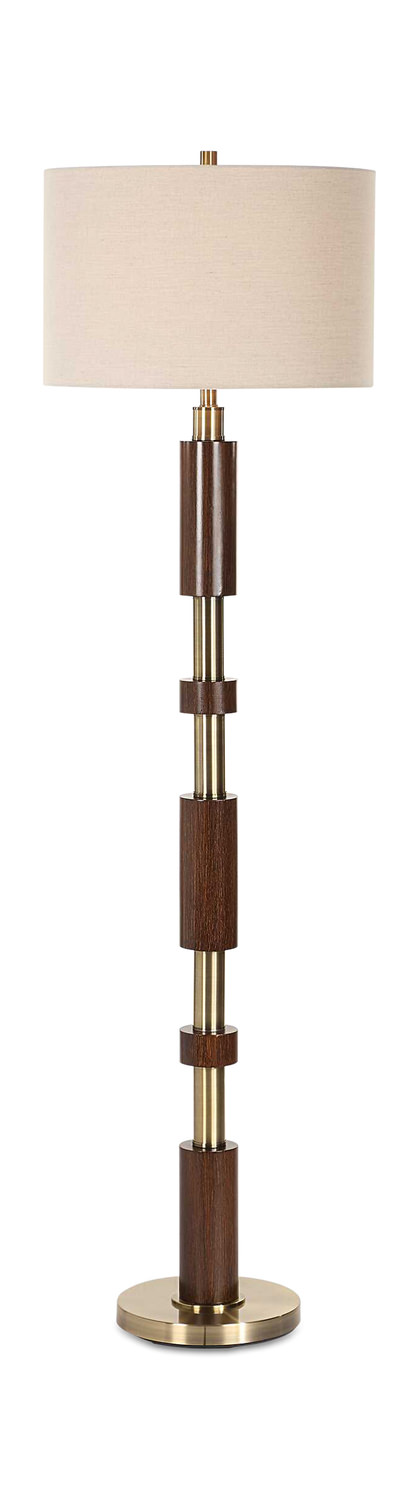 - The Stacked Floor Lamp Features A Striking Design With Alternating Wooden Cylinders And Brass Plated Details That Exude A Modern Feel With Mid-Century Elements.