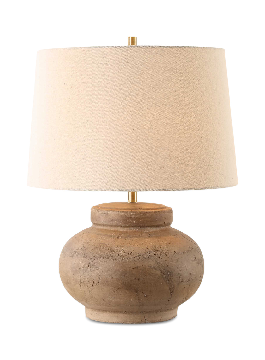 - Crafted With A Distressed Terracotta Base, The Urbino Table Lamp Exudes Warmth And Character With Its Earthy Tones And Organic Texture. Accented By Plated Brushed Antique Brass Details.