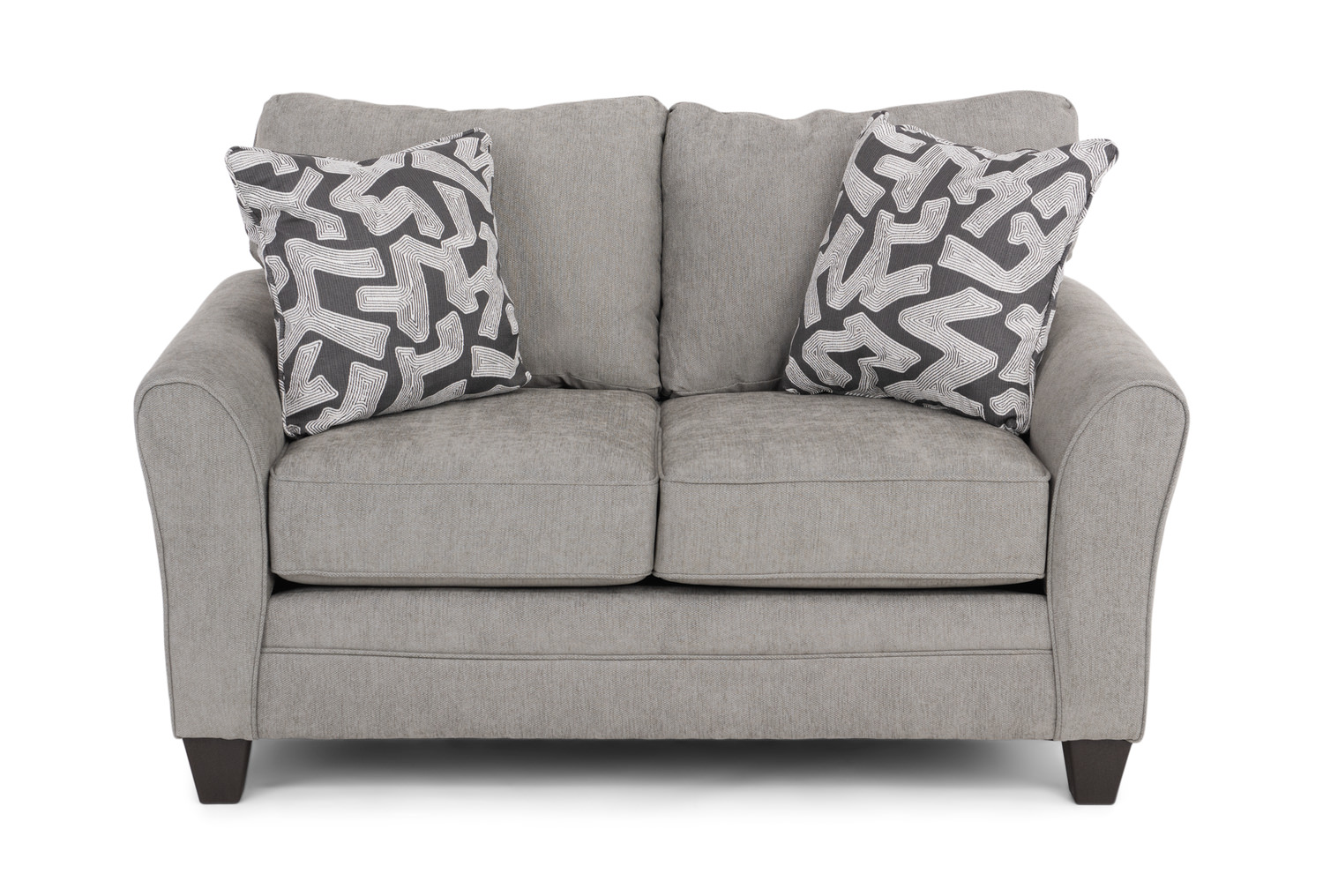 Introducing the stylish and comfortable Krissy Loveseat by HOM Furniture! This sleek and modern loveseat features a high-resiliency foam cushion supported by a durable engineered hardwood frame with steel spring suspension for maximum comfort and longevity. The chic grey fabric upholstery adds a touch of sophistication to any space, making it perfect for those who appreciate casual style with a modern twist. With simple assembly required, this stationary loveseat is a breeze to set up. Please note that custom orders are unavailable, ensuring that you receive your new favorite piece in no time. Upgrade your living room with the Krissy Loveseat today!