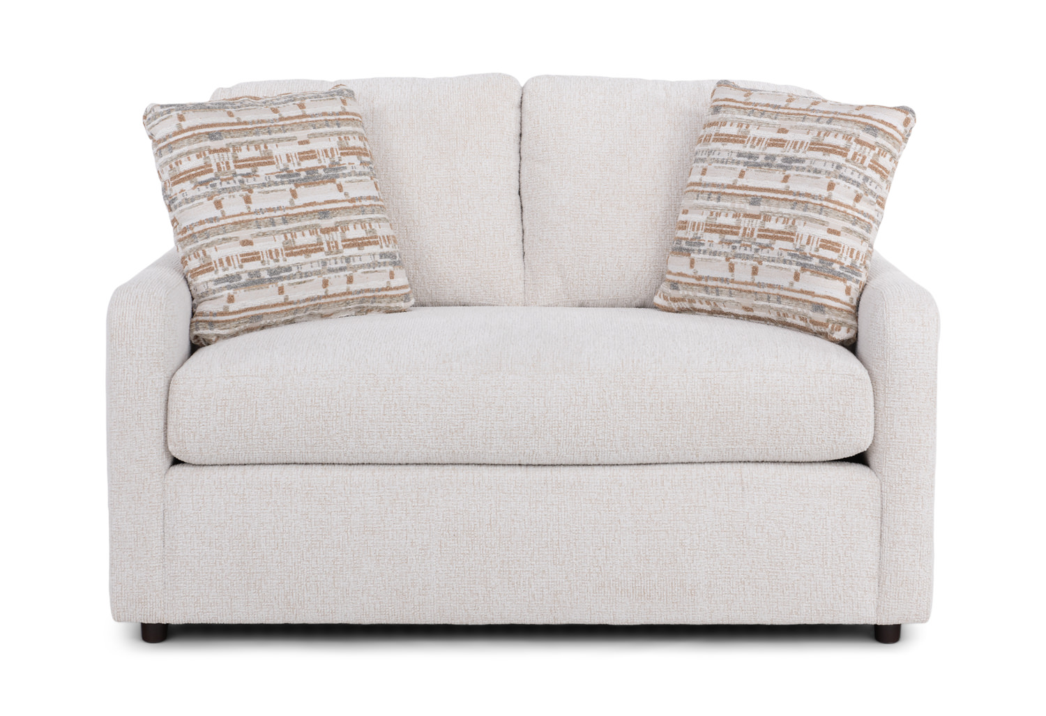 Introducing the Mitzi Loveseat by HOM Furniture, a perfect blend of style and comfort for your living space. Crafted with a durable engineered and hardwood frame, this loveseat ensures long-lasting quality. The high resiliency foam cushion and two included pillows offer a cozy seating experience. With its transitional design and white/off-white fabric material, this loveseat effortlessly complements various decor styles. Special orders are available for customization, and the quick ship program ensures timely delivery. Add a touch of modern elegance with the Mitzi Loveseat, a stylish and inviting addition to any home.