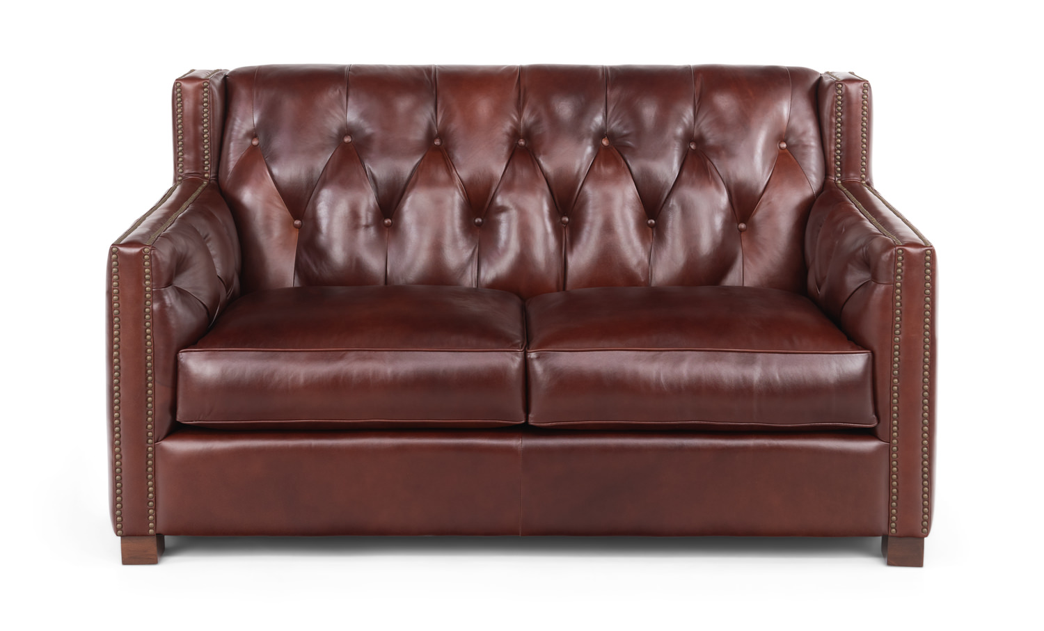 Indulge in the epitome of luxury with the Reeves Loveseat by HOM Furniture's Fine Furniture Gallery. Crafted from 100% top-grain North American leather, this sofa exudes sophistication and elegance. The classic tufted design adds a timeless appeal to any living space, while the hardwood and plywood frame ensures durability and longevity. The padded sides and back provide ultimate comfort and support, making it the perfect spot to relax and unwind. Special orders are always welcome, allowing you to customize this masterpiece to suit your unique style and preferences. Elevate your home decor with the Reeves Sofa and experience the ultimate blend of style and comfort.