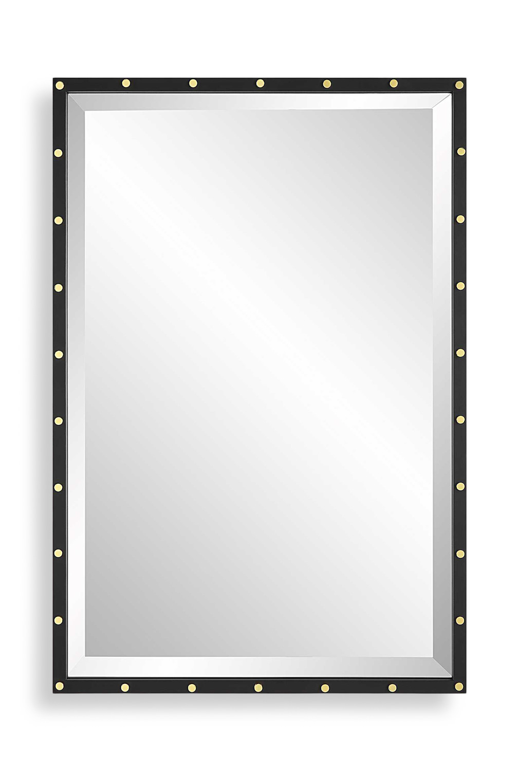- This Urban Industrial Design Features An Iron Frame Finished In Matte Black Adorned With Plated Brass Smooth Screw Caps. Mirror Has A Generous 1 1/4" Bevel. May Be Hung Horizontal Or Vertical.