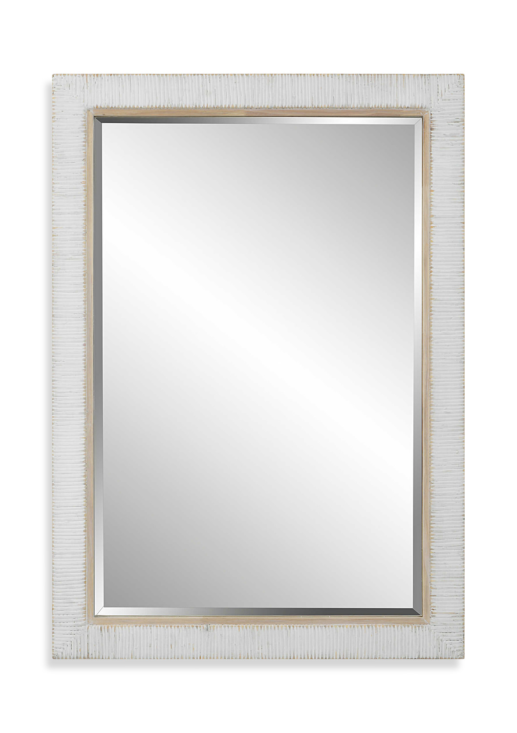 • Based Upon Coastal Styling, This Rectangular Mirror Features A Whitewashed Rattan Wrapped Frame With A Solid Oak Inner Liner And A Generous 1 1/4" Bevel. May Be Hung Horizontal Or Vertical.