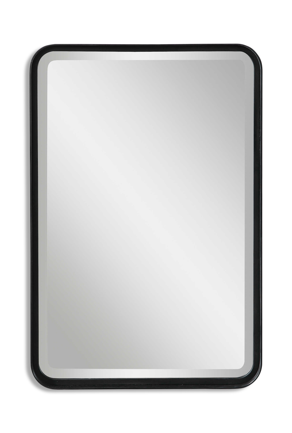 - Versatile In Design, This Vanity Mirror Is Constructed From A Forged Metal Strap Finished In Satin Black. The Mirror Has A 1 1/4" Bevel And May Be Hung Horizontal Or Vertical.
