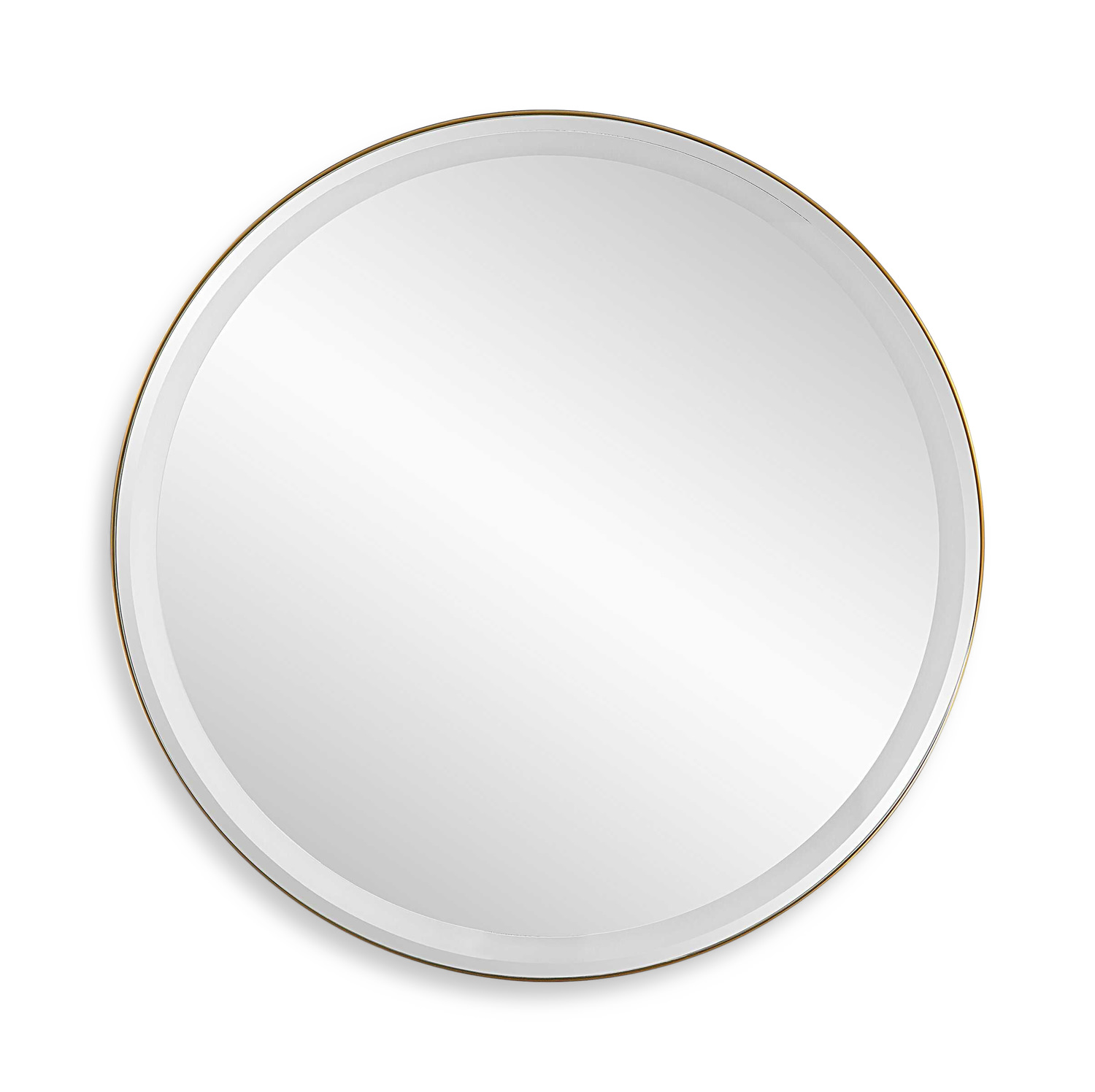 - Versatile In Design, This Round Mirror Has Integrated LED Lighting That Illuminates Through The Frosted Strip In The Polished Edged Mirror. The Plated Brushed Brass Stainless Steel Frame Is Off Set From The Wall To Allow Ambient Lighting From The Back. Easy To Use Touch Buttons Are Featured On The Bottom Right Of The Mirror With An On Off Function, Touch And Hold Kelvin Control From 2700k To 4000k, And Touch And Hold Brightness Control. LED Lights Rated At 40,000 Hours. Ships With Plug, But Can Be Hardwired Professionally. Touch Screen Icons Continue To Illuminate When Powered Off For Easy Navigation In Dark Settings.