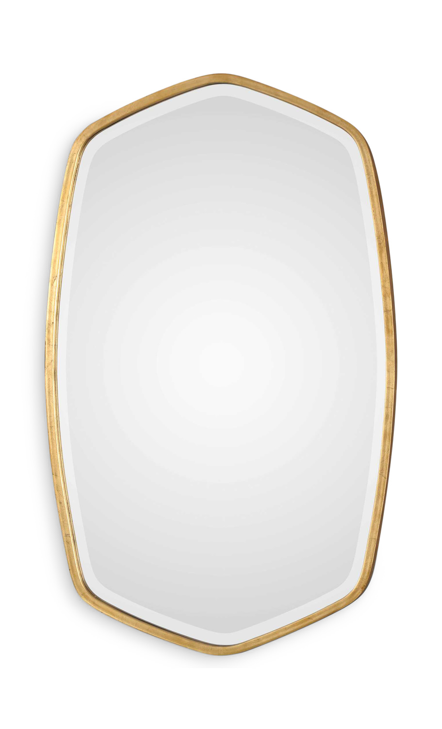 • This Hand Forged Metal Mirror Frame Features A Unique Shape With Delicate Curves, Finished In A Lightly Antiqued Gold Leaf.