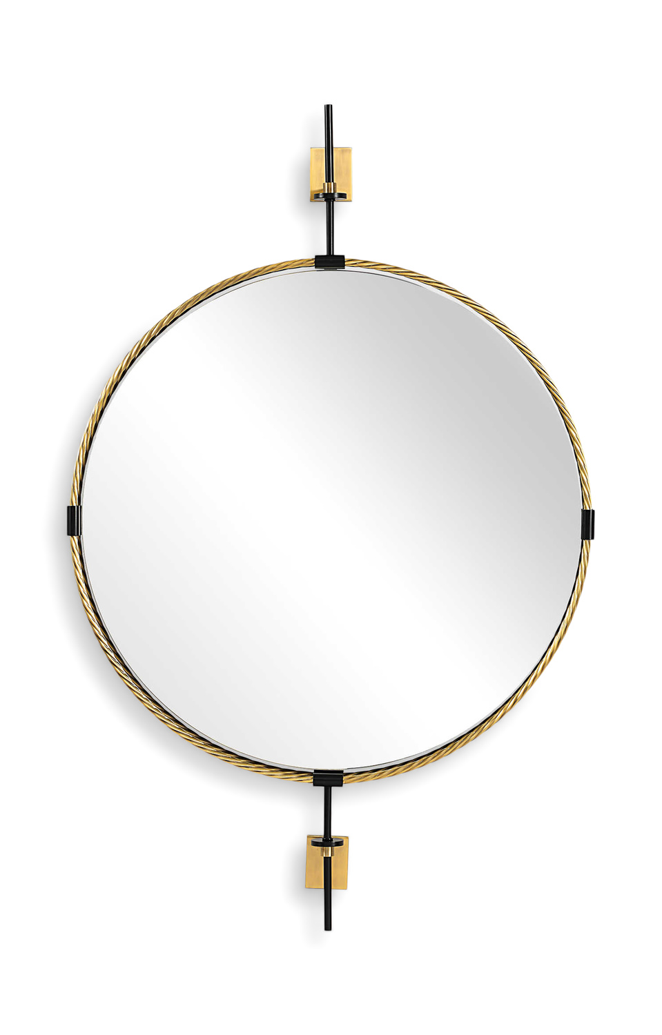 Introducing the Guardrail Round Mirror, a stunning piece from HOM Furniture that exudes elegance and sophistication. The twisted iron outer frame of this mirror is beautifully accented with black spindles, creating a unique and luxurious design. Finished in antique brass, this mirror is sure to add a touch of glamour to any space. Elevate your home décor with the Guardrail Round Mirror, perfect for creating a focal point in your entryway or hallway. Its full-length design not only adds a touch of charm but also serves a functional purpose. Transform any room with this exquisite mirror that combines style and functionality seamlessly.