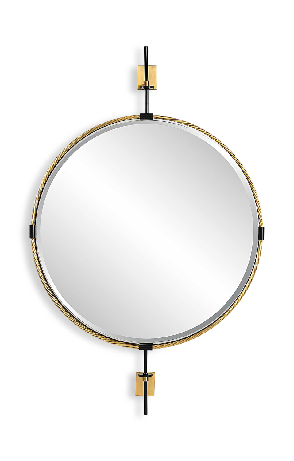 Add a touch of industrial flair and timeless sophistication to your space with the Guardrail Round Mirror from HOM Furniture. This stunning piece features a striking double twisted iron outer frame finished in an elegant plated antique brass, accented with black details for added depth and dimension. The mirror's brass color adds a touch of warmth to any room, making it a versatile and stylish addition to your home decor. Elevate your space with the Uttermost brand quality and craftsmanship that this mirror offers. Perfect for adding a touch of glamour to any room, this mirror is a must-have for those looking to make a statement in their home.