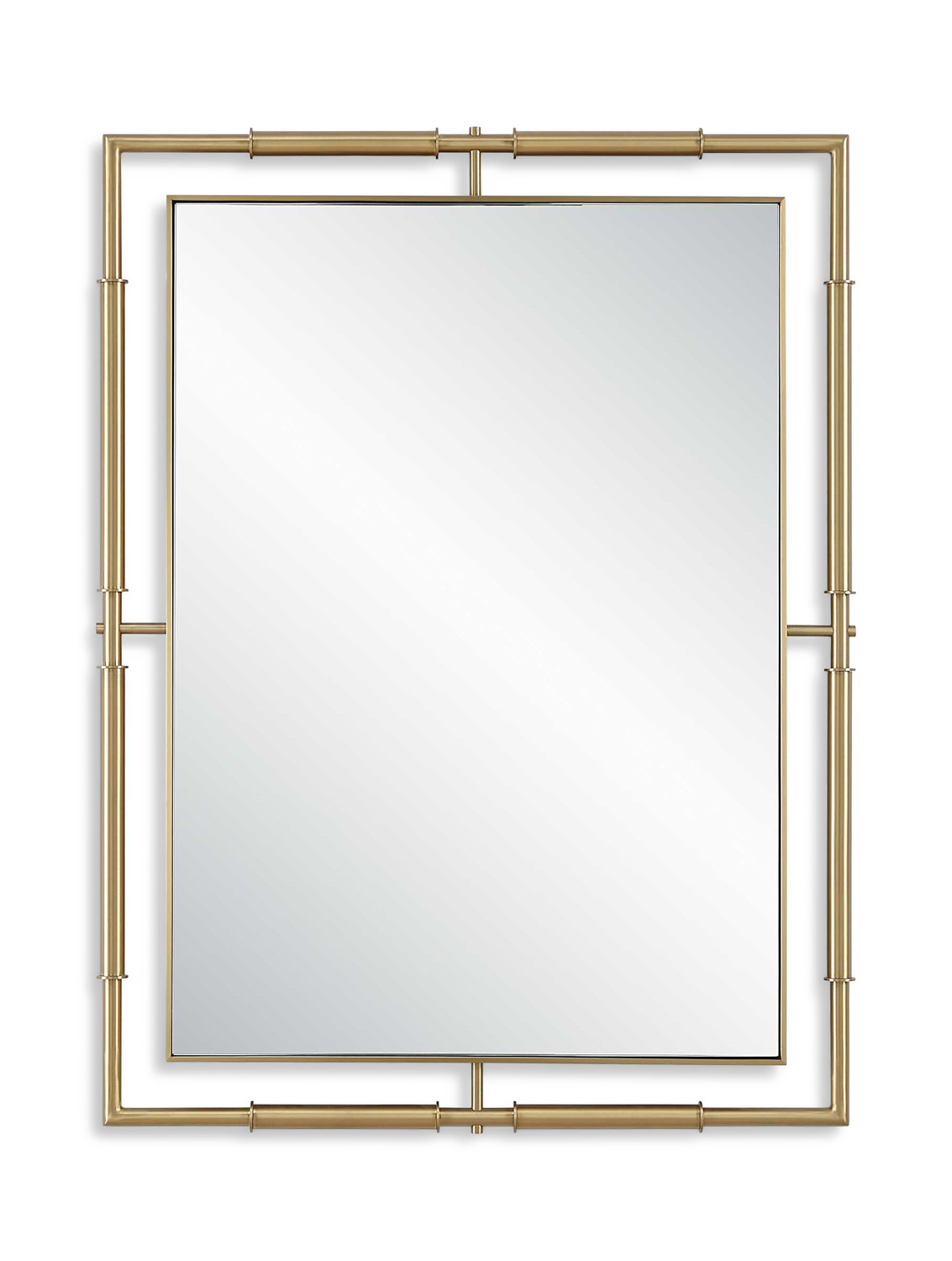 Enhance your living space with the exquisite elegance of the "It's All Connected" Rectangle Brass Mirror from HOM Furniture. Crafted with precision by Uttermost, this mirror features a stainless-steel frame in a luxurious plated brass finish, exuding a modern industrial charm that will elevate any room. The suspended outer frame adds a unique touch, creating a soft and sophisticated ambiance. The floating polished edge mirror adds a touch of glamour and functionality. Versatile in design, this mirror can be hung either horizontally or vertically to suit your space perfectly. Add a touch of sophistication and style to your home with this stunning brass mirror from HOM Furniture.