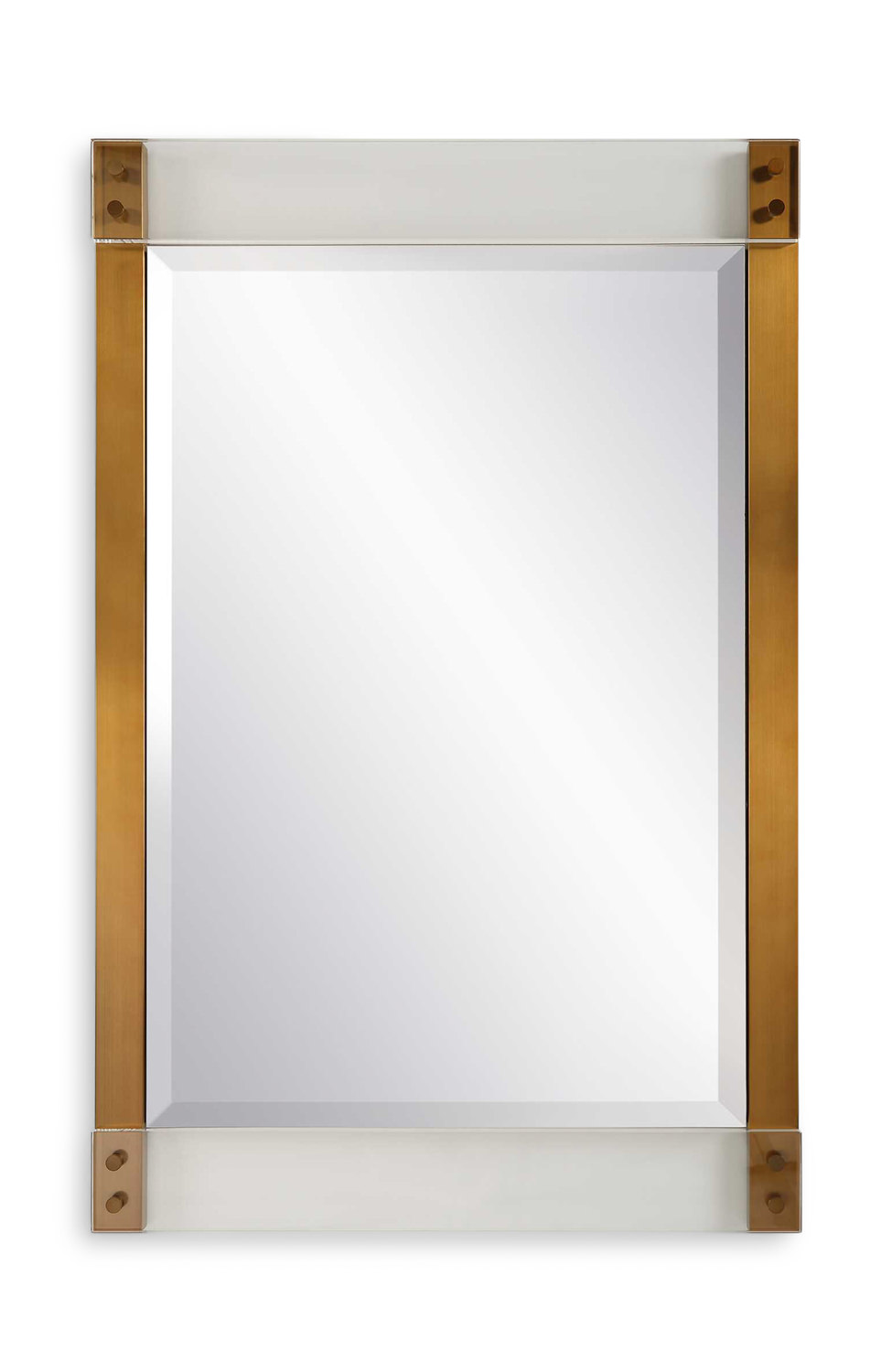 • The Nera Mirror Features Stainless Steel Sides Finished In A Plated Brass, Anchoring Thick Acrylic Bands. Mirror Has A 1" Bevel And May Be Hung Horizontal Or Vertical.
