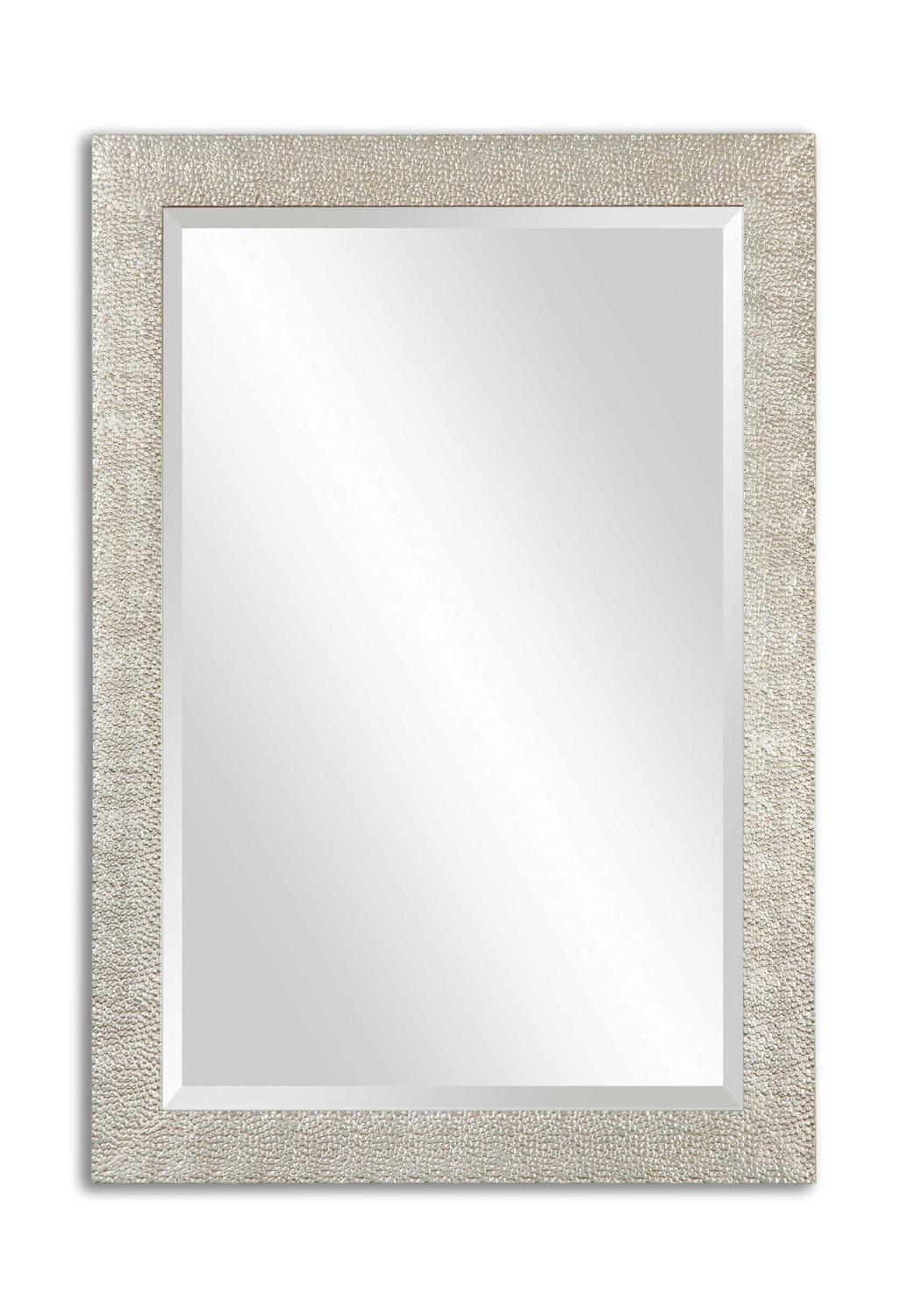 Enhance your living space with the Porcius Antiqued Silver Mirror from HOM Furniture. The frame of this exquisite mirror boasts a textured profile finished in a lightly antiqued silver, adding a touch of elegance to any room. The mirror features a generous 1 1/4" bevel, providing a sophisticated and polished look. Versatile and stylish, this mirror can be hung either horizontally or vertically to suit your space. Elevate your decor with the timeless charm of the Uttermost brand and the sleek silver color of this stunning mirror.