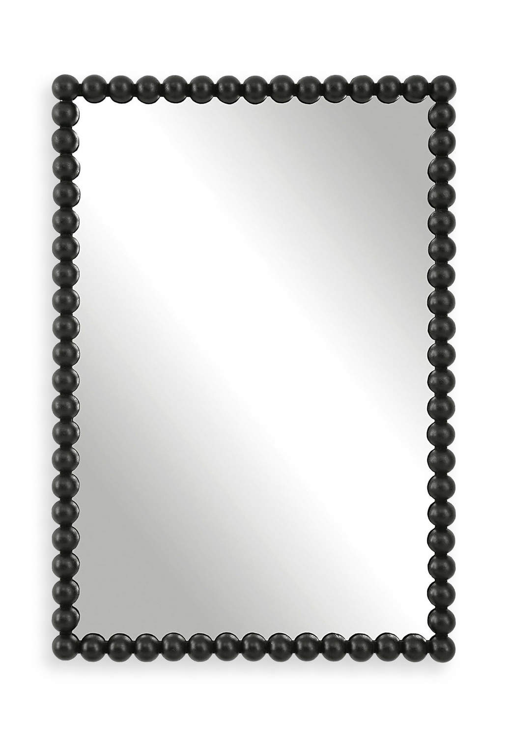 Enhance your living space with the Serna Black Vanity Mirror from HOM Furniture. Featuring an iron frame with a beaded profile finished in a sophisticated satin black, this mirror exudes elegance and style. Versatile and functional, it can be hung either horizontally or vertically to suit your space and needs. The Uttermost brand ensures top-notch quality and craftsmanship, guaranteeing a lasting addition to your home decor. Elevate your interior design with this sleek black mirror that adds a touch of luxury to any room.