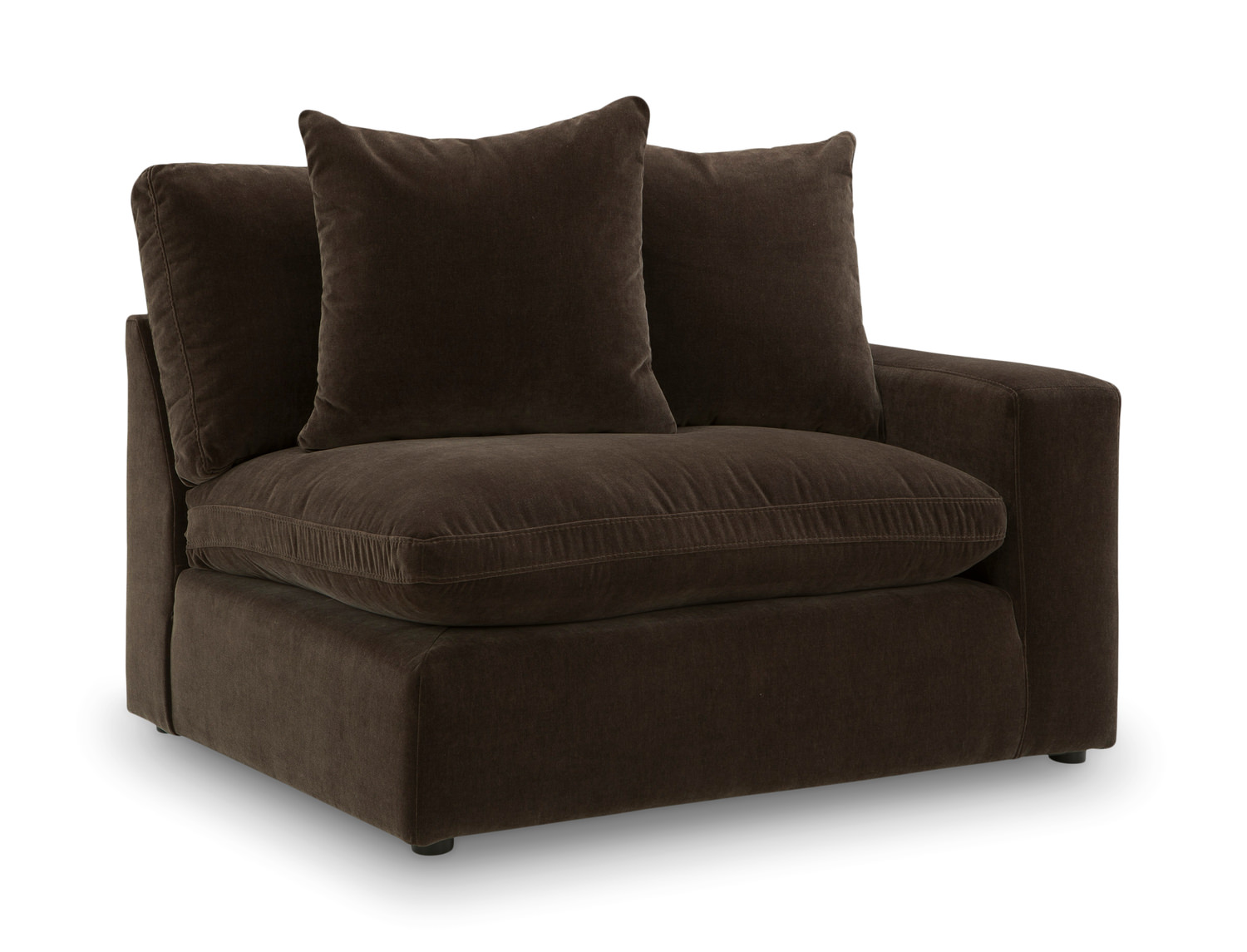 Introducing the Hagen Left Arm Facing Chair from HOM Furniture, a perfect blend of modern style and casual comfort. Crafted with an engineered and hardwood frame, this chair ensures durability and stability for years to come. The high-resiliency foam and reversible pillow-top feather blend cushions offer a plush seating experience, while the 100% polyester fabric in a rich brown color adds a touch of sophistication to any living space. This modular piece, finished on all sides, allows for versatile placement in your room. The platform foundation system provides additional support and stability. Simple assembly required. Custom order not available.